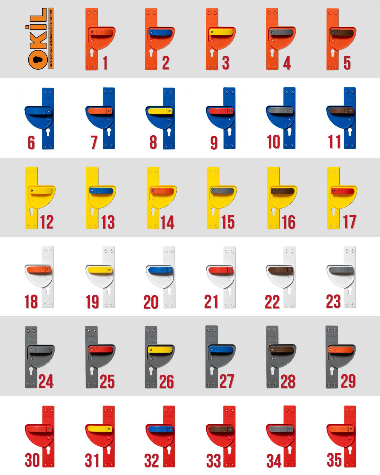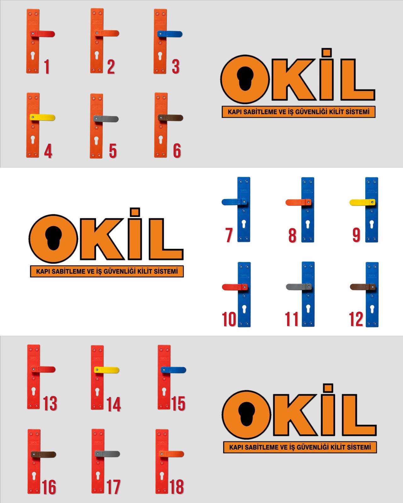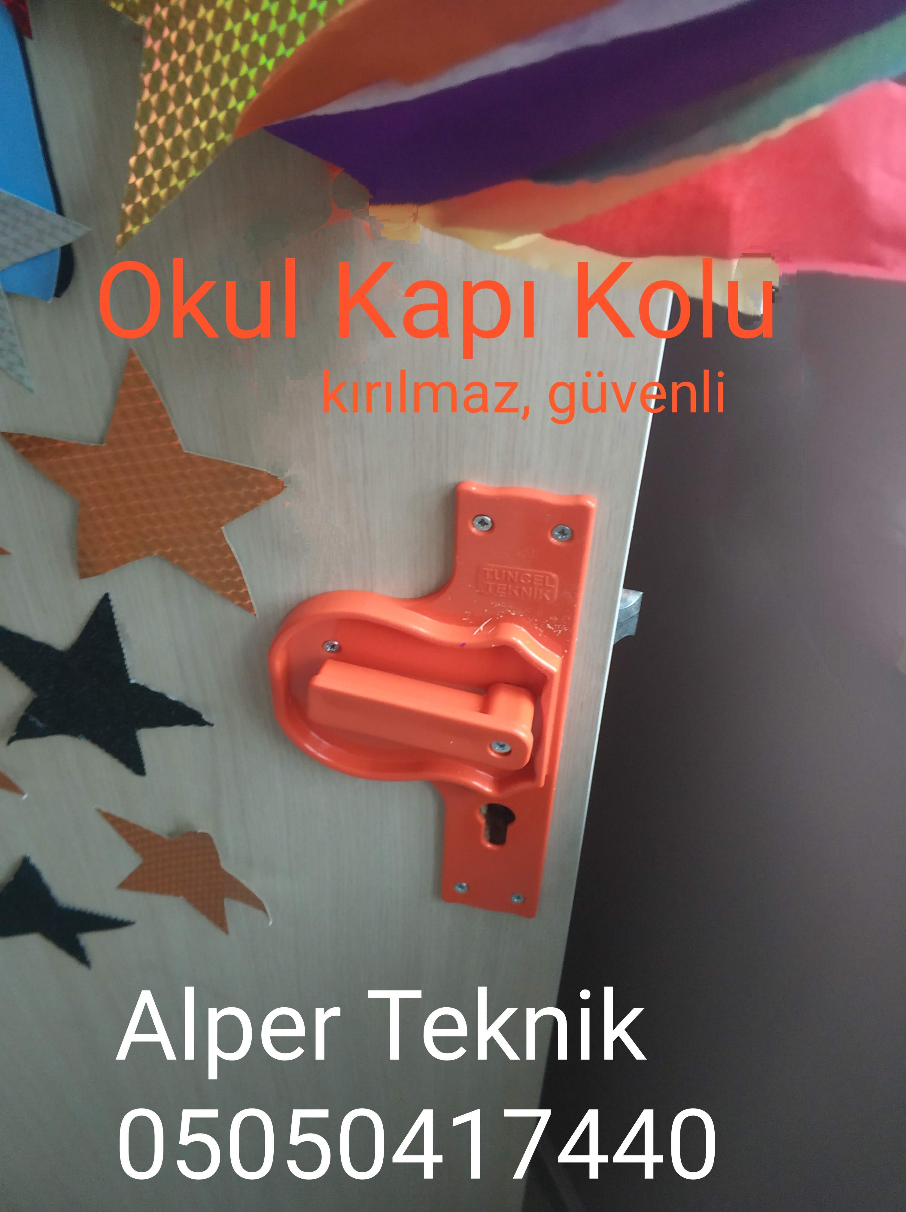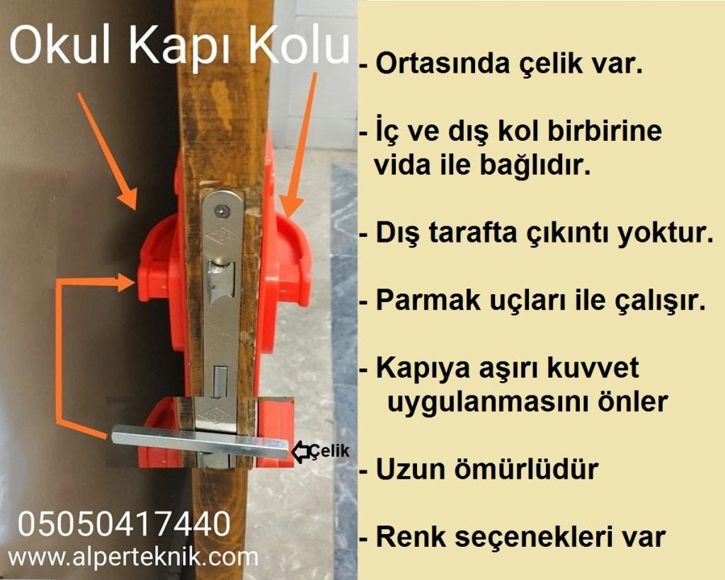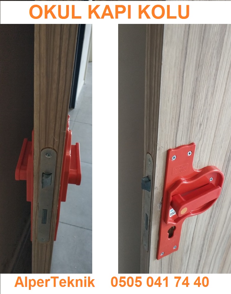 Okul güvenlik kapı kolu, iş güvenliği kapı kolu, Bariyerli kapı kolu, düz oluklu kapı kolu gibi isimler ile okulların sınıf kapıları için tasarlanmış kapı kolları mevcuttur.