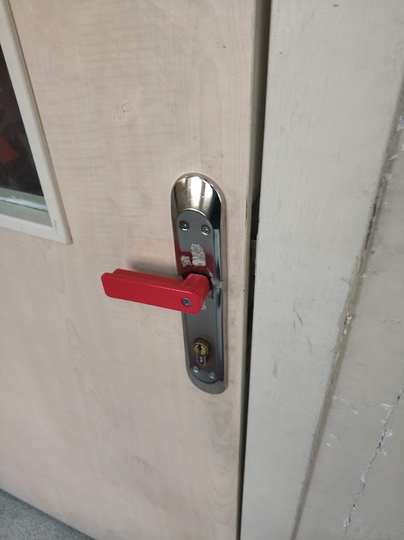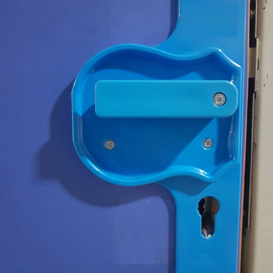 Sınıf kapıları için özel kapı kolu yapılması pek çok sorunu çözmüştür.