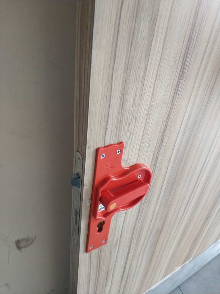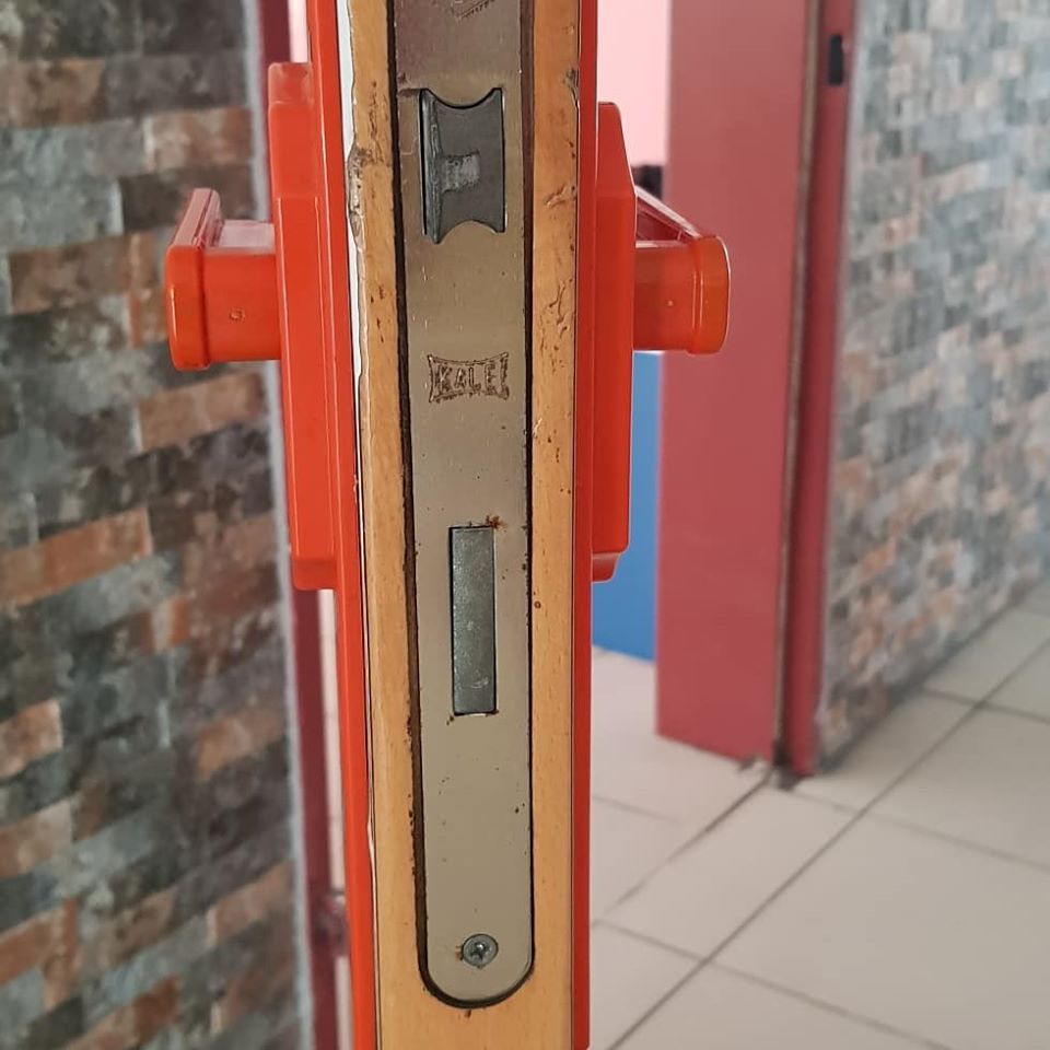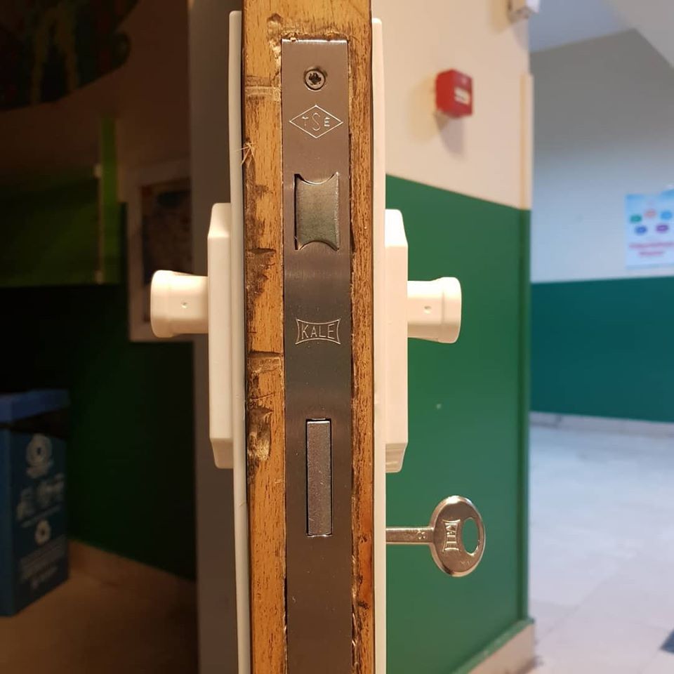 – Okul kapı kolu kilit üzerindeki yay ile çalışır. Arızalı kilit var ise yenisi ile değişmelidir.
