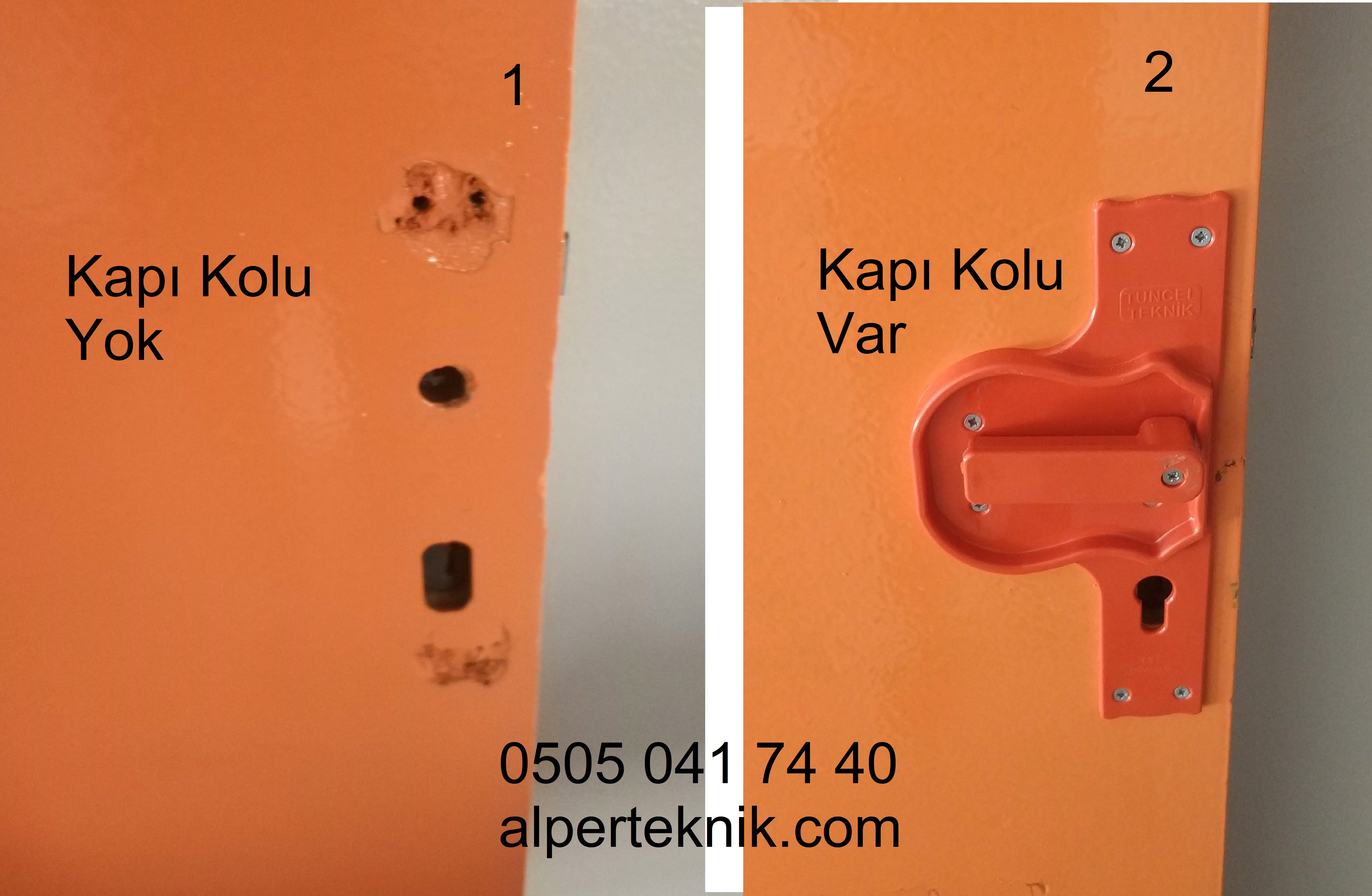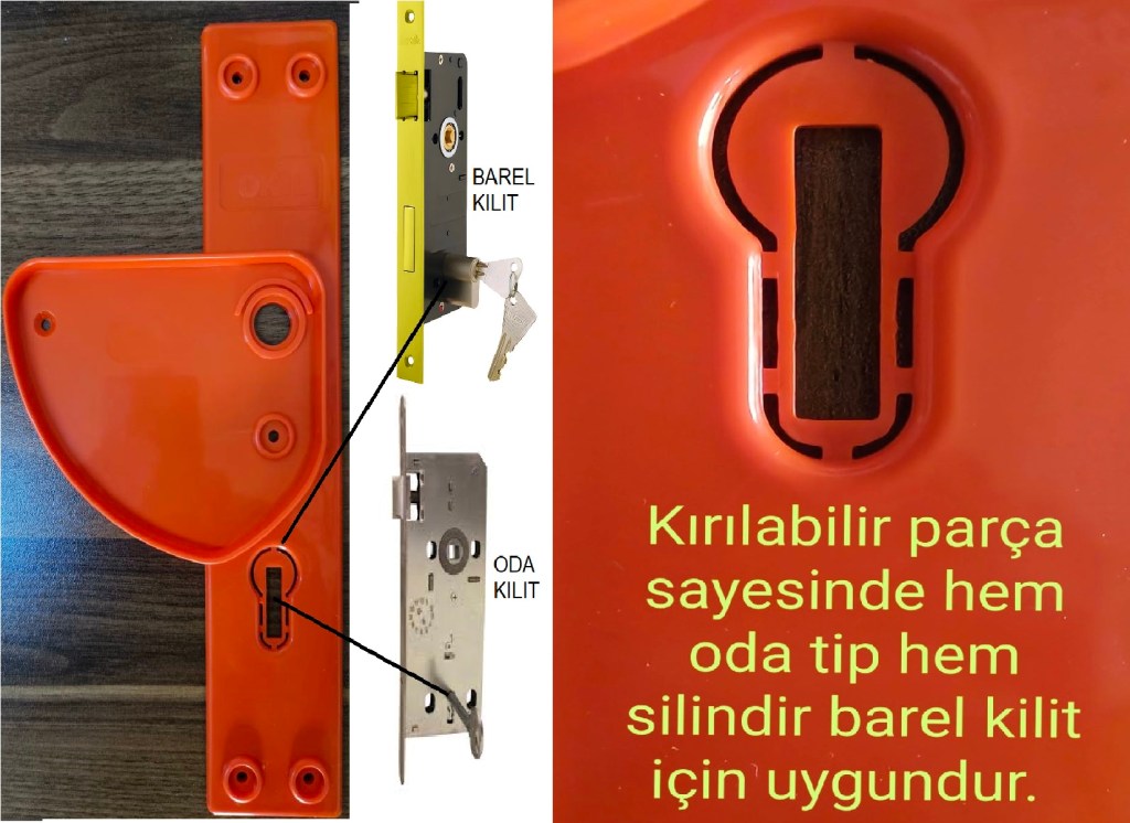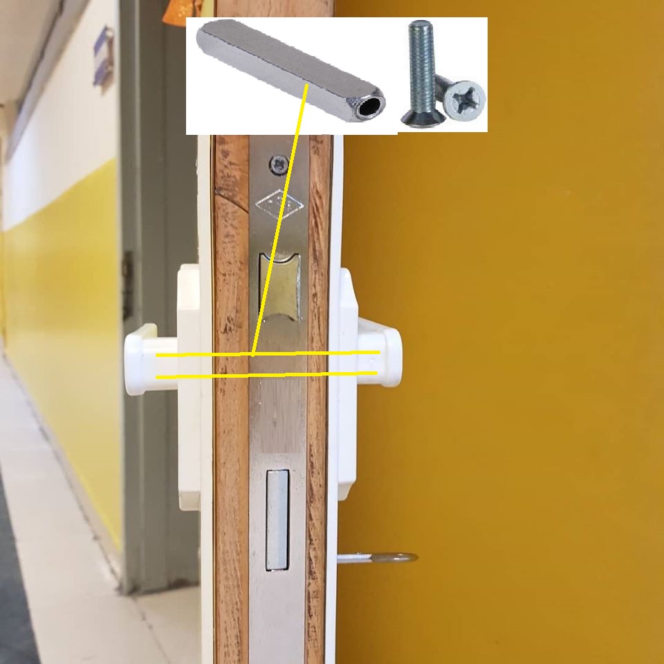 Mevcut kapı kolları uçları yuvarlatılmış, topuz biçiminde ise kullanılabilir. Veya bu kolların sağlamları idari oda kapılarına takılabilir.