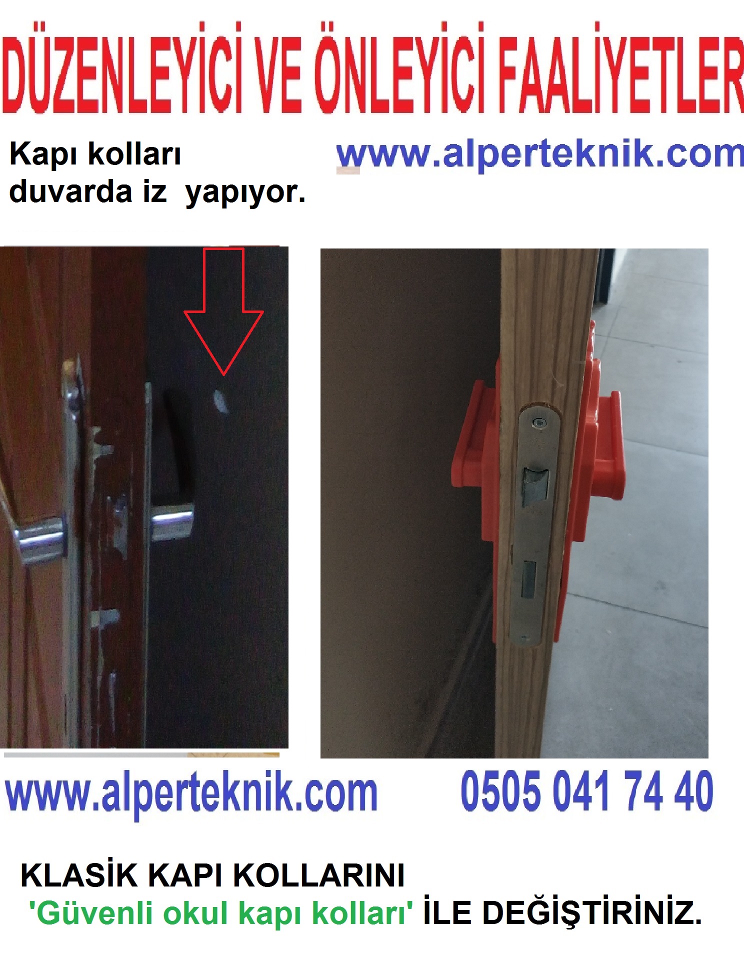 Çözüm5- Güvenli Kapı kolları; Öğrenci çekiştirme yapmasına müsaade etmez, Kapı ve bağlantıları zarar görmez