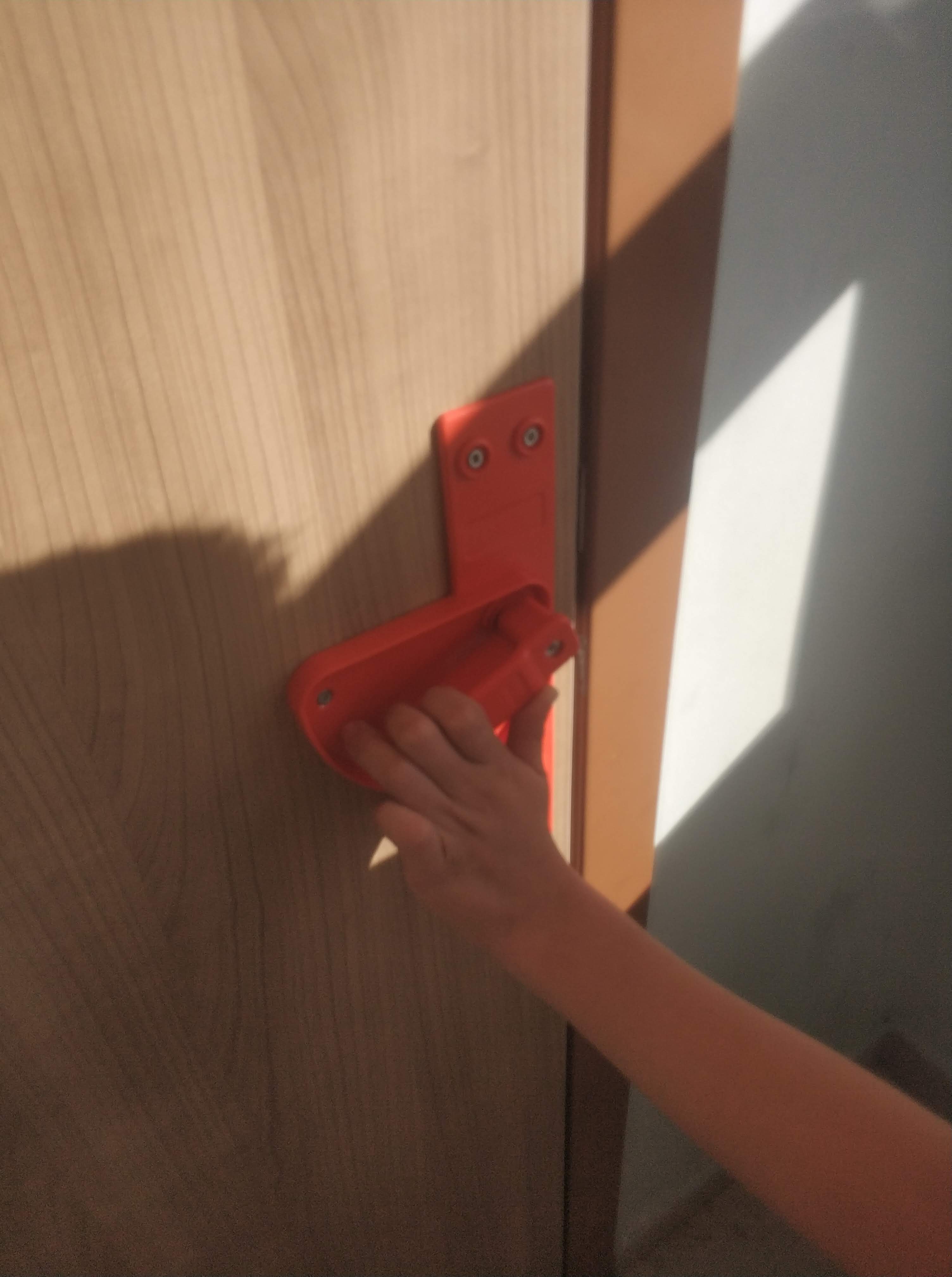 Kapı tutucu ürünler kullanmak: Bu ürünler hızlı kapı çarpmalarında kapı kanadı ve kasa arasında tampon görevi görerek arada sıkışabilecek olan parmakları yaralanmalardan korur. Aynı zamanda kapı istenildiği zaman tam olarak da kapanabilir. Anahtar ve mandal kontrollü modellere sahiptir. Kapı arkasına takılır on yıllarca sorunsuz çalışır. öğretmen kontrolü ıle tam koruma sağlanır.