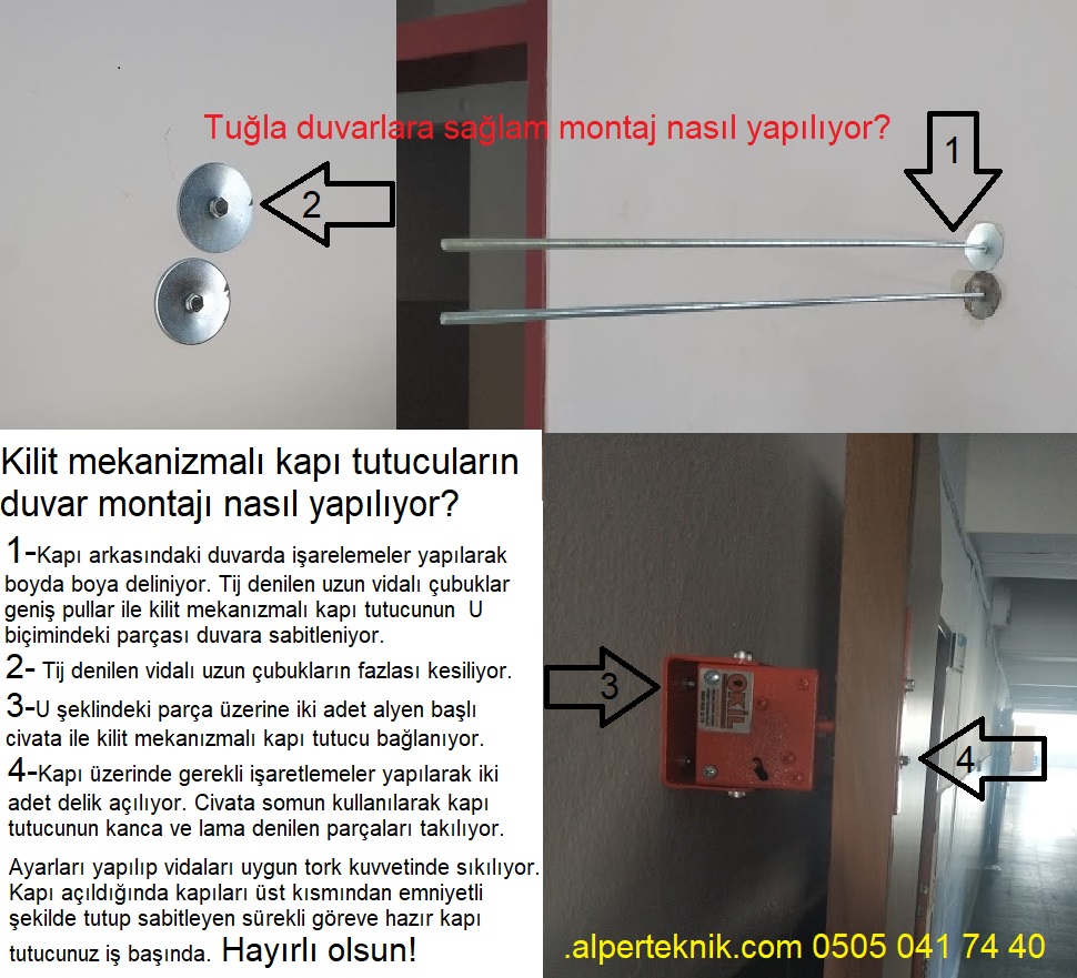 -Kapı sabitleme kilidi duvar montajı; zeminden uygun yükseklikte ve sağlam olmalıdır.